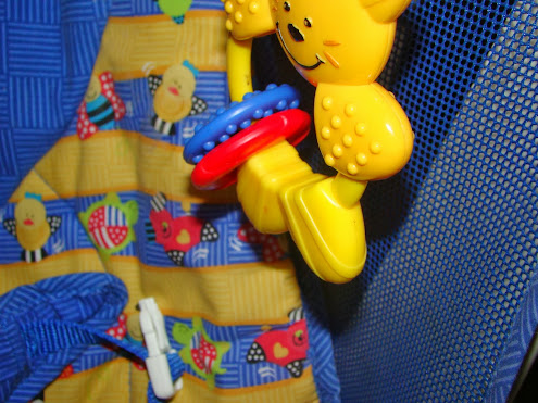 Boczne zaczepy przytrzymują szelki barkowe w pozycji ułatwiajacej usadzanie i wyjmowanie dziecka